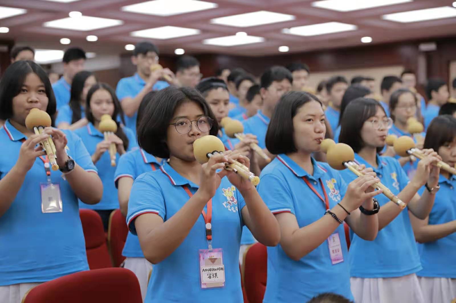 闭营仪式上,营员代表、班主任代表、领带代表和承办方代表分别作了发言,营员代表还展示与活动相关的绘画作品并用葫芦丝同奏《龙的传人》。
