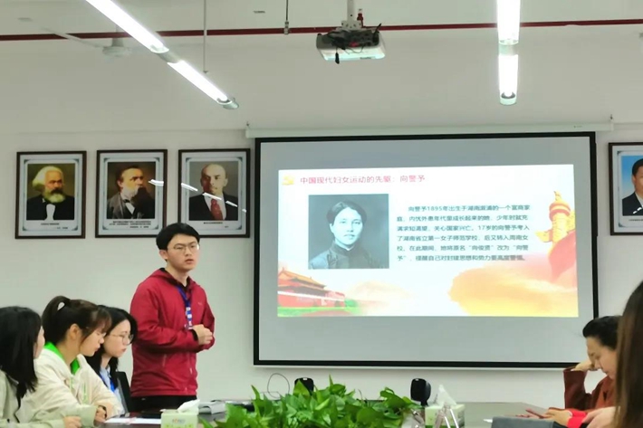 接下来宣讲成员代表进行试讲,宣传部干事唐香龙从“吾辈当求真心得,做真事业”、“为我女界呵,大放光明”和“人迟早是要死的,但要死得明明白白,慷慷慨慨”三个方面回顾了向警予短暂而有伟大的一生。向警予是中国妇女运动的先驱,她为中国妇女解放事业所做的贡献不可磨灭。