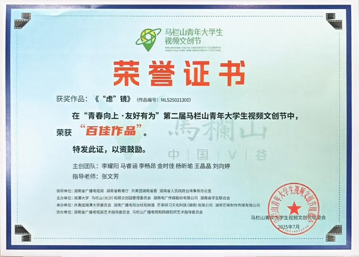 【林大网讯】(文/化学与化工学院)7月14日,我校化学与化工学院李耀阳同学编剧、执导并主演的微短剧《“虑”镜》从来自全球120余所高校青年创作者的1600多部视频作品中脱颖而出,荣获湖南省马栏山青年大学生视频文创节“百佳作品”奖。