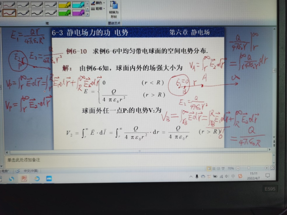 李泽军老师也认为,无论是线上教学还是线下教学,老师都会按照PPT进行授课。其实,两者也有很大不同,线下教学时,学生能看到老师,老师的神态、表情、动作等肢体语言也是教学的一部分。而线上教学受条件所限,不能完全达到线下教学的效果。根据PPT讲解知识时,遇到重点内容或者学生理解有困难的内容,特别是数学物理的公式推导过程,如何让学生尽快理解,不影响后面的学习呢?在线下,老师只需要在黑板上进行板书或者画图,对重点内容进行推导,学生可以很快理解,不影响后面的学习。而线上学习,如何让学生看到老师的推导过程呢?在看不到板书,空对空的情况下,学生只能听老师的讲解,而为了让学生听懂,老师可能要反复讲解,效果也未必好。如果配上手写板和手写笔就可以很好地解决这个问题(图6),让学生看到老师的批注和板书,与线下教室上课的体验基本一致,能很好地帮助学生理解学习重点,达到事半功倍的效果。
