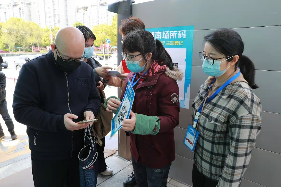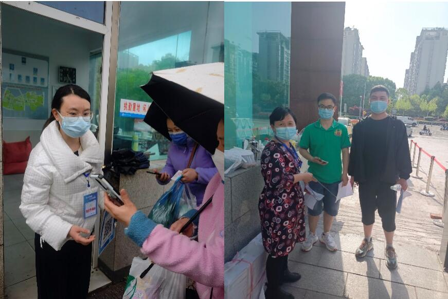 图14 唐玲、杨婷、罗建花老师课余参与党员先锋岗抗疫服务